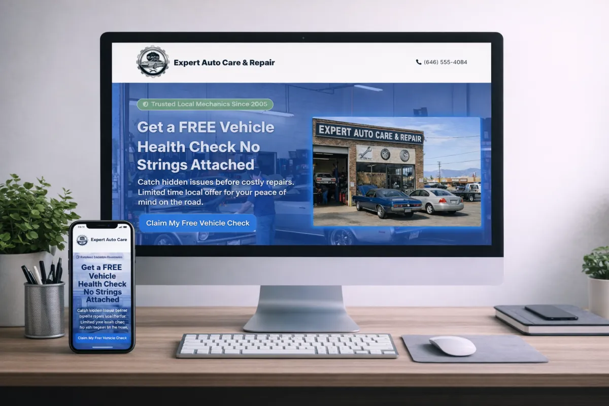 High converting lead funnel for an auto repair shop with free inspection offer and automated follow ups.